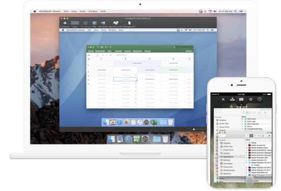 Stay productive on-the-go with your preferred mobile device. With GoToMyPC mobile apps, now you can work from any iPad, iPhone, Android, or other mobile devices, connecting over 3G, 4G, and WiFi — wherever you are. You can even incorporate mouse control, screen zoom, and full keyboard access.